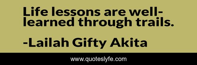"Lailah Gifty Akita Quotes." Quoteslyfe.com, 2025. Fri. 05 Dec. 2025. <https://www.quoteslyfe.com/quote/Life-lessons-are-well-learned-through-trails-116258>.
