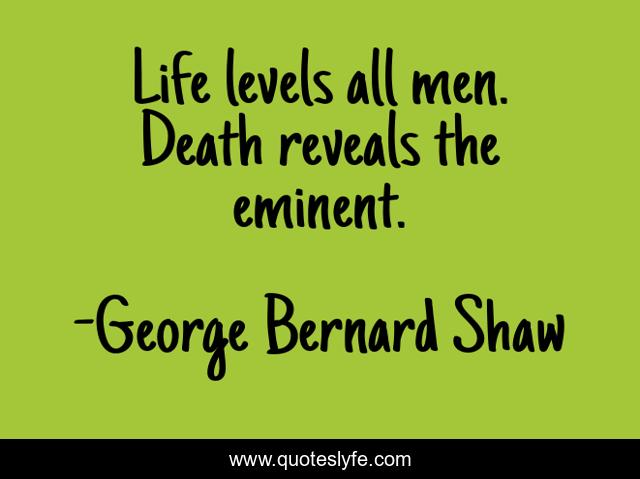 This page presents the quote "Life levels all men. Death reveals the eminent.". Author of this quote is George Bernard Shaw. This quote is about life, men, levels,.