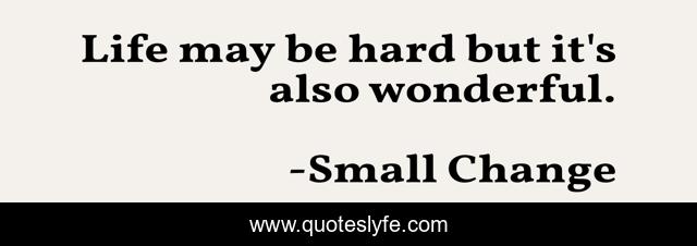 This page presents the quote "Life may be hard but it's also wonderful.". Author of this quote is Small Change. .