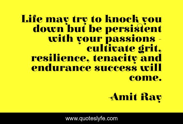 Life may try to knock you down but be persistent with your passions - cultivate grit, resilience, tenacity and endurance success will come.