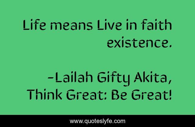 "Lailah Gifty Akita, Think Great: Be Great! Quotes." Quoteslyfe.com, 2025. Sat. 06 Dec. 2025. <https://www.quoteslyfe.com/quote/Life-means-Live-in-faith-existence-85031>.