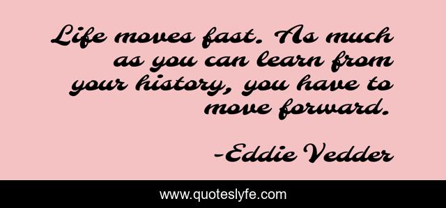 This page presents the quote "Life moves fast. As much as you can learn from your history, you have to move forward.". Author of this quote is Eddie Vedder. This quote is about life, learn,.