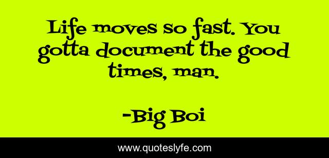 This page presents the quote "Life moves so fast. You gotta document the good times, man.". Author of this quote is Big Boi. This quote is about life, man, good times,.