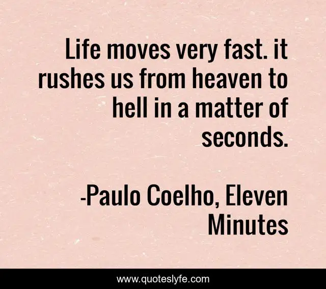 This page presents the quote "Life moves very fast. it rushes us from heaven to hell in a matter of seconds.". Author of this quote is Paulo Coelho, Eleven Minutes. This quote is about life, life-and-living, life-lessons,.