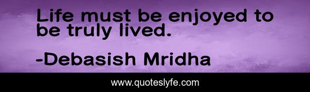 This page presents the quote "Life must be enjoyed to be truly lived.". Author of this quote is Debasish Mridha. This quote is about life, debasish, mridha, philosophy, debasish-mridha, enjoying-life, inspirational, enthusiasm,.