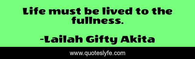 "Lailah Gifty Akita Quotes." Quoteslyfe.com, 2025. Mon. 08 Dec. 2025. <https://www.quoteslyfe.com/quote/Life-must-be-lived-to-the-fullness-250289>.