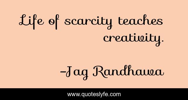 This page presents the quote "Life of scarcity teaches creativity.". Author of this quote is Jag Randhawa. This quote is about behaviour, attitude, creativity, innovation,.