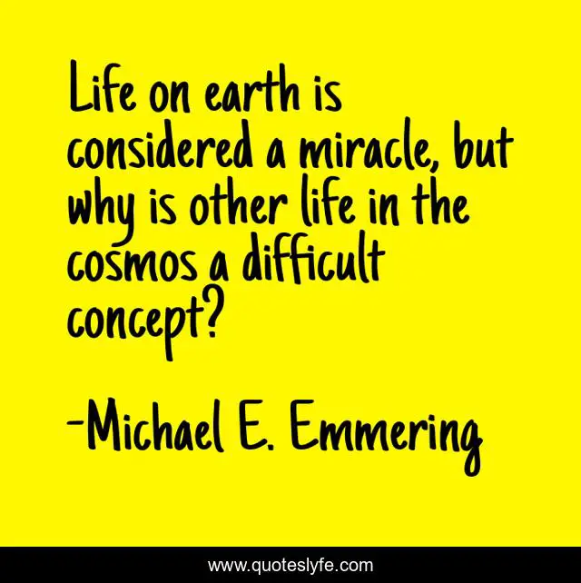 "Michael E. Emmering Quotes." Quoteslyfe.com, 2025. Mon. 08 Dec. 2025. <https://www.quoteslyfe.com/quote/Life-on-earth-is-considered-a-miracle-42345>.