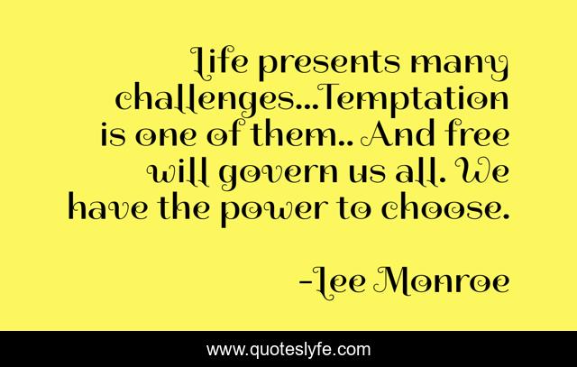 This page presents the quote "Life presents many challenges...Temptation is one of them.. And free will govern us all. We have the power to choose.". Author of this quote is Lee Monroe. .