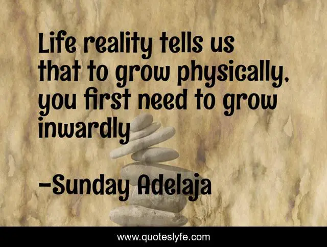 This page presents the quote "Life reality tells us that to grow physically, you first need to grow inwardly". Author of this quote is Sunday Adelaja. This quote is about life, physically, reality, inwardly, need, grow, tells, first,.