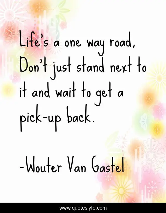 This page presents the quote "Life's a one way road, Don't just stand next to it and wait to get a pick-up back.". Author of this quote is Wouter Van Gastel. This quote is about one, life, back, next, way, sad, road,.