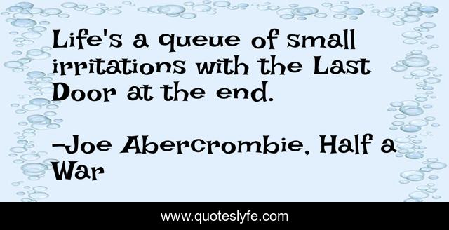 This page presents the quote "Life's a queue of small irritations with the Last Door at the end.". Author of this quote is Joe Abercrombie, Half a War. This quote is about life, death,.