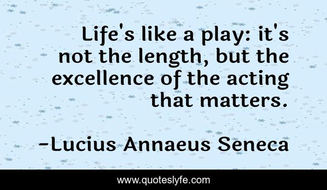 This page presents the quote "Life's like a play: it's not the length, but the excellence of the acting that matters.". Author of this quote is Lucius Annaeus Seneca. This quote is about acting, excellence, play,.