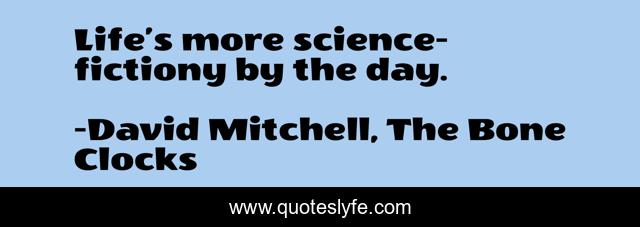 This page presents the quote "Life’s more science-fictiony by the day.". Author of this quote is David Mitchell, The Bone Clocks. This quote is about life, science-fiction,.