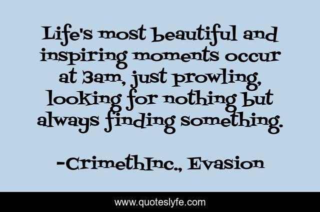 "CrimethInc., Evasion Quotes." Quoteslyfe.com, 2025. Tue. 09 Dec. 2025. <https://www.quoteslyfe.com/quote/Life-s-most-beautiful-and-inspiring-moments-151447>.