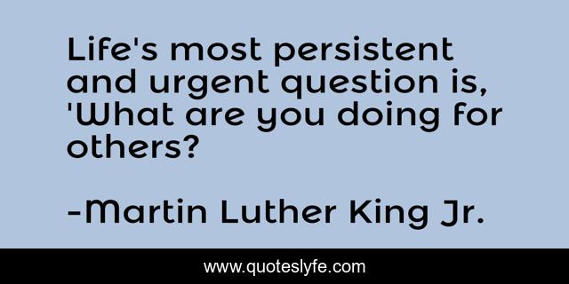 This page presents the quote "Life's most persistent and urgent question is, 'What are you doing for others?". Author of this quote is Martin Luther King Jr.. This quote is about awarness, world, help, consciousness,.