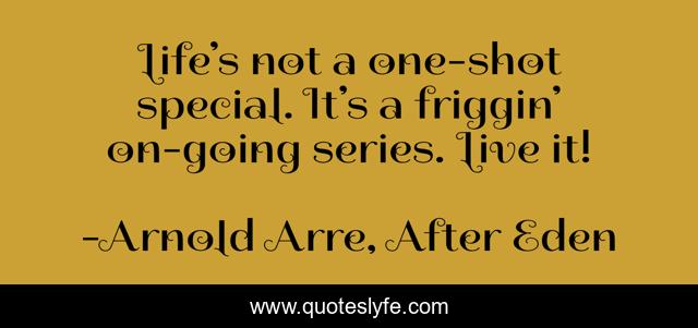 This page presents the quote "Life’s not a one-shot special. It’s a friggin’ on-going series. Live it!". Author of this quote is Arnold Arre, After Eden. .