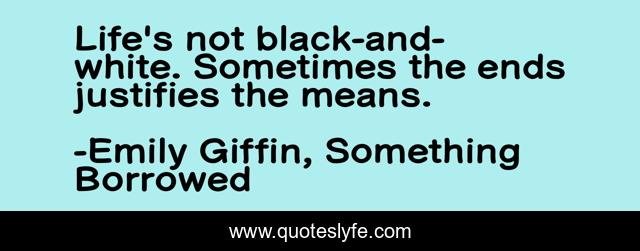 This page presents the quote "Life's not black-and-white. Sometimes the ends justifies the means.". Author of this quote is Emily Giffin, Something Borrowed. .