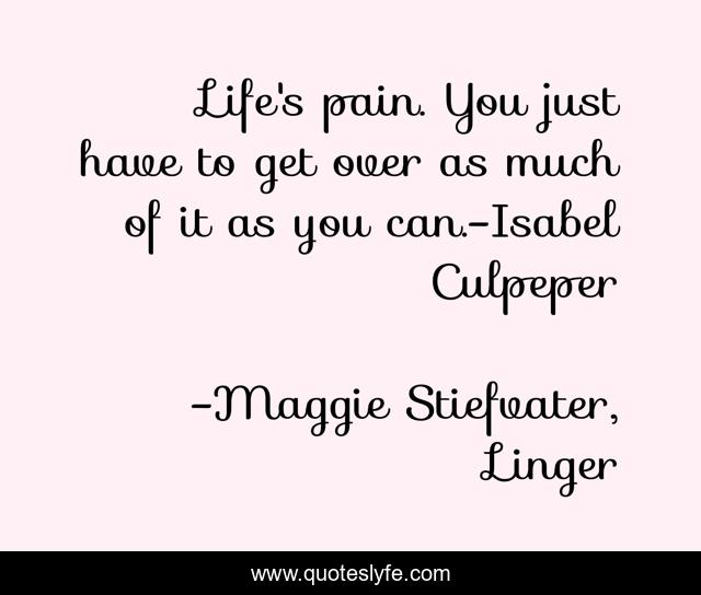 This page presents the quote "Life's pain. You just have to get over as much of it as you can.-Isabel Culpeper". Author of this quote is Maggie Stiefvater, Linger. This quote is about life, pain, linger,.