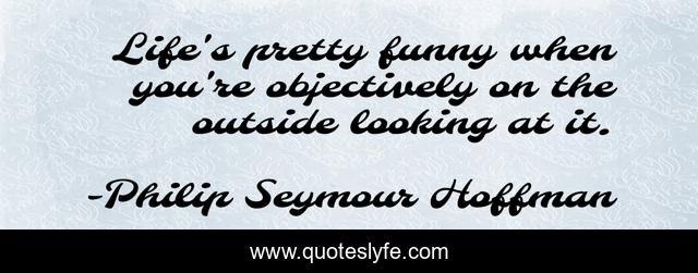 This page presents the quote "Life's pretty funny when you're objectively on the outside looking at it.". Author of this quote is Philip Seymour Hoffman. This quote is about looking, life,.