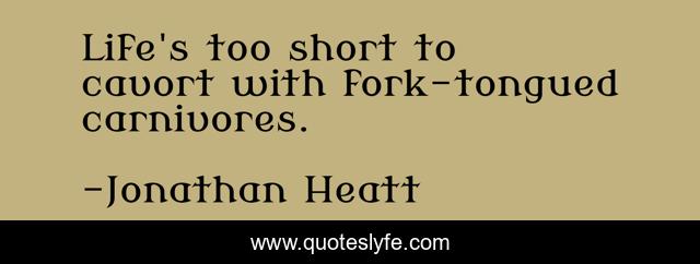 This page presents the quote "Life's too short to cavort with fork-tongued carnivores.". Author of this quote is Jonathan Heatt. .