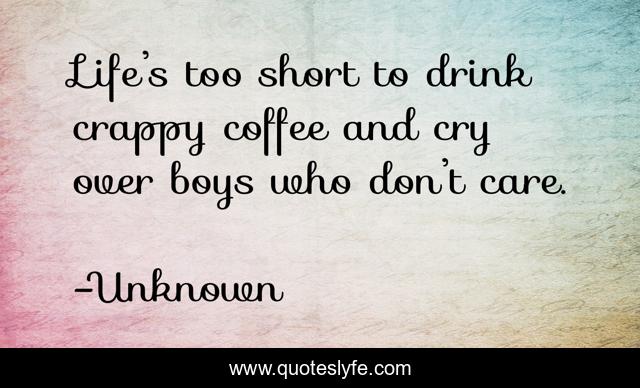 This page presents the quote "Life’s too short to drink crappy coffee and cry over boys who don’t care.". Author of this quote is Unknown. This quote is about relationships, coffee, life,.