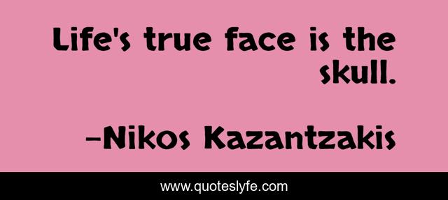 This page presents the quote "Life's true face is the skull.". Author of this quote is Nikos Kazantzakis. This quote is about life, true, skull, face,.