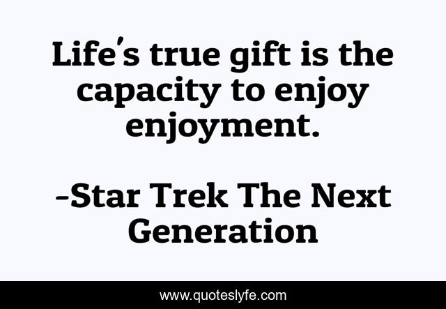 This page presents the quote "Life's true gift is the capacity to enjoy enjoyment.". Author of this quote is Star Trek The Next Generation. This quote is about gratitude, pleasure, optimism,.