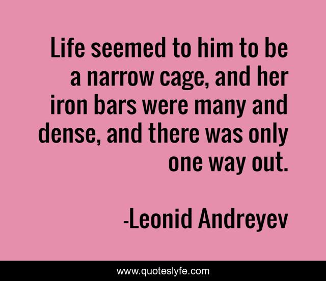 This page presents the quote "Life seemed to him to be a narrow cage, and her iron bars were many and dense, and there was only one way out.". Author of this quote is Leonid Andreyev. This quote is about cynicism, life, death, despair,.