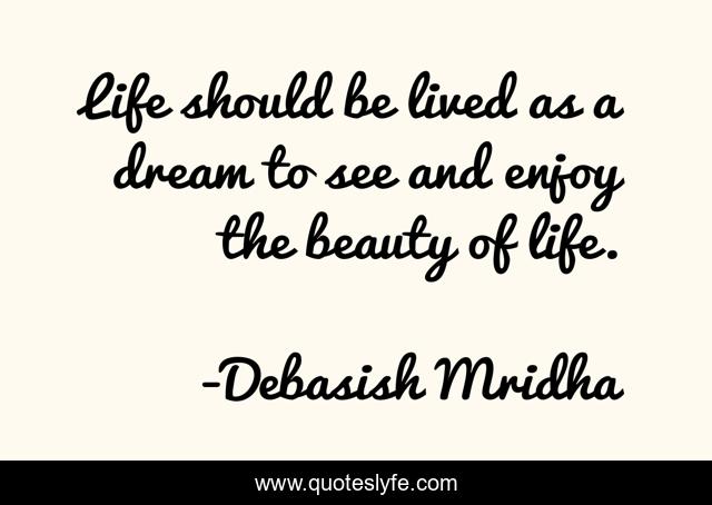 This page presents the quote "Life should be lived as a dream to see and enjoy the beauty of life.". Author of this quote is Debasish Mridha. This quote is about how-to-live, philosophy, debasish-mridha, quotes, inspirational, enthusiasm, beauty-of-life, dream, debasish-mridha-m-d,.