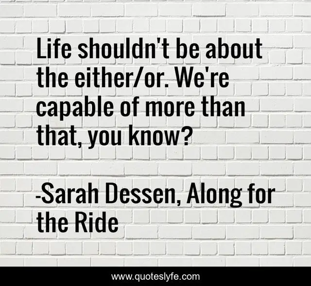 This page presents the quote "Life shouldn't be about the either/or. We're capable of more than that, you know?". Author of this quote is Sarah Dessen, Along for the Ride. This quote is about capability, life, either, truth, or,.