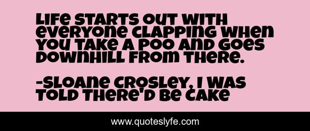 This page presents the quote "Life starts out with everyone clapping when you take a poo and goes downhill from there.". Author of this quote is Sloane Crosley, I Was Told There'd Be Cake. .