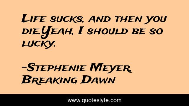 This page presents the quote "Life sucks, and then you die.Yeah, I should be so lucky.". Author of this quote is Stephenie Meyer, Breaking Dawn. This quote is about life, twilight, breaking-dawn,.