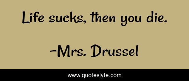 "Mrs. Drussel Quotes." Quoteslyfe.com, 2025. Sat. 06 Dec. 2025. <https://www.quoteslyfe.com/quote/Life-sucks-then-you-die-116400>.