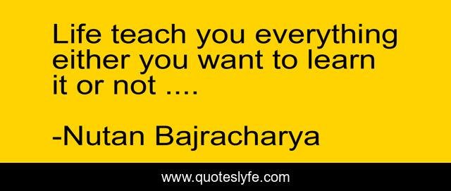 This page presents the quote "Life teach you everything either you want to learn it or not ....". Author of this quote is Nutan Bajracharya. This quote is about life, love, affection, learn,.