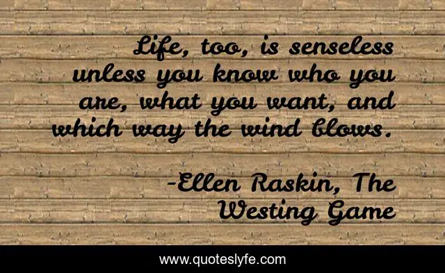 This page presents the quote "Life, too, is senseless unless you know who you are, what you want, and which way the wind blows.". Author of this quote is Ellen Raskin, The Westing Game. .
