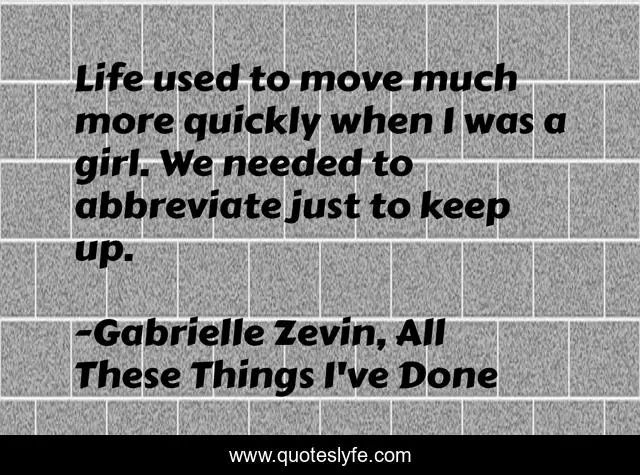 "Gabrielle Zevin, All These Things I've Done Quotes." Quoteslyfe.com, 2025. Sat. 06 Dec. 2025. <https://www.quoteslyfe.com/quote/Life-used-to-move-much-more-quickly-230564>.