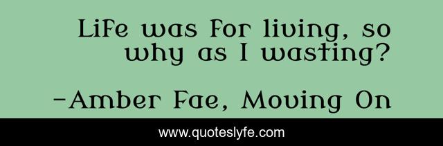 This page presents the quote "Life was for living, so why as I wasting?". Author of this quote is Amber Fae, Moving On. This quote is about living, life, wasting-life,.