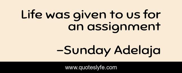 This page presents the quote "Life was given to us for an assignment". Author of this quote is Sunday Adelaja. This quote is about kingdom, life, love, jobless, service, people, money, god, work,.