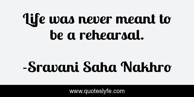 This page presents the quote "Life was never meant to be a rehearsal.". Author of this quote is Sravani Saha Nakhro. .