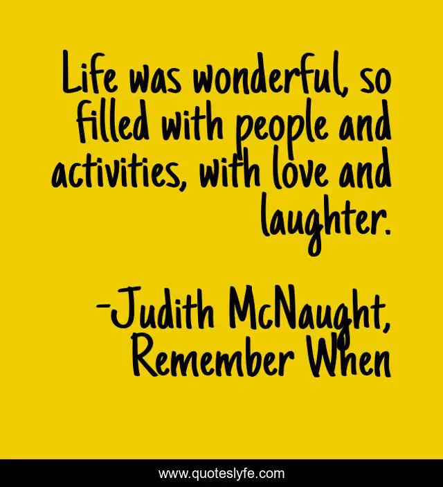 This page presents the quote "Life was wonderful, so filled with people and activities, with love and laughter.". Author of this quote is Judith McNaught, Remember When. .