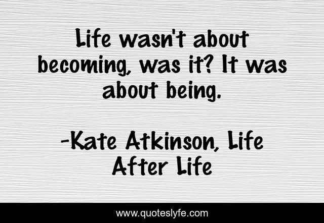 This page presents the quote "Life wasn't about becoming, was it? It was about being.". Author of this quote is Kate Atkinson, Life After Life. This quote is about being, becoming, life,.