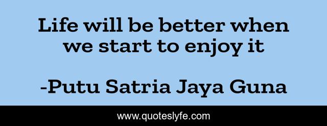 This page presents the quote "Life will be better when we start to enjoy it". Author of this quote is Putu Satria Jaya Guna. This quote is about life-philosophy, spirit, work-ethic,.