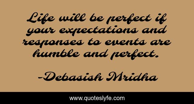 This page presents the quote "Life will be perfect if your expectations and responses to events are humble and perfect.". Author of this quote is Debasish Mridha. This quote is about responses, philosophy, debasish-mridha, expectations, life-will-be-perfect, quotes, debasish-mridha-md, inspirational, enthusiasm,.