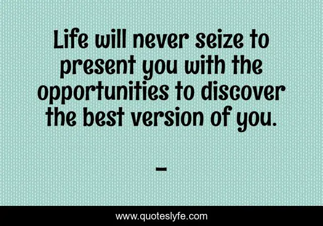 This page presents the quote "Life will never seize to present you with the opportunities to discover the best version of you.". Author of this quote is . This quote is about create-the-best-version-of-you, discover-a-better-you, a-better-you, edmond-mbiaka, oppportunity,.