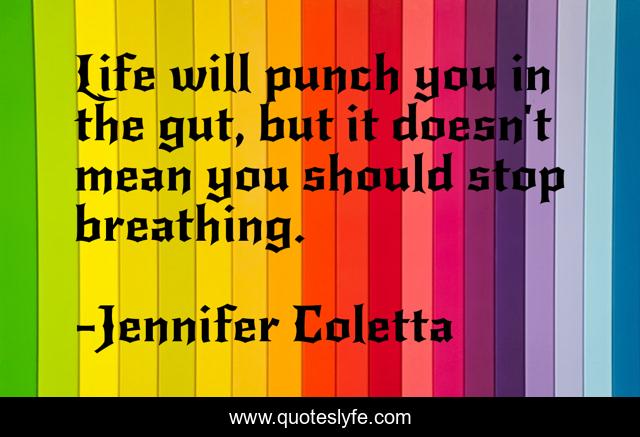 This page presents the quote "Life will punch you in the gut, but it doesn't mean you should stop breathing.". Author of this quote is Jennifer Coletta. This quote is about confidence, positive, motivational, entrepreneur, determination, optimistic, inspirational, enthusiasm,.