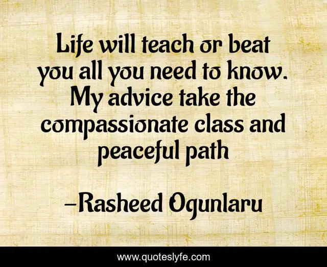 "Rasheed Ogunlaru Quotes." Quoteslyfe.com, 2025. Sat. 06 Dec. 2025. <https://www.quoteslyfe.com/quote/Life-will-teach-or-beat-you-all-37541>.