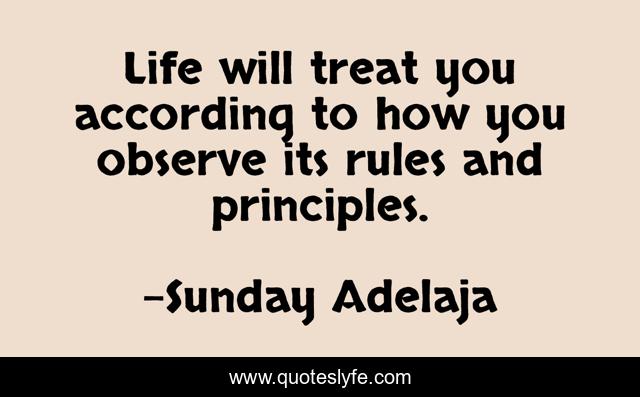 This page presents the quote "Life will treat you according to how you observe its rules and principles.". Author of this quote is Sunday Adelaja. This quote is about principles, observe, treat, according,.