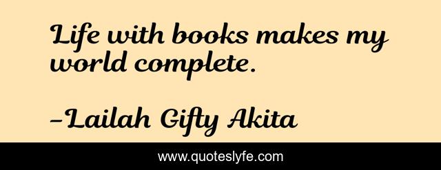 "Lailah Gifty Akita Quotes." Quoteslyfe.com, 2025. Sat. 06 Dec. 2025. <https://www.quoteslyfe.com/quote/Life-with-books-makes-my-world-complete-232060>.