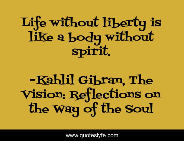 "Kahlil Gibran, The Vision: Reflections on the Way of the Soul Quotes." Quoteslyfe.com, 2025. Fri. 05 Dec. 2025. <https://www.quoteslyfe.com/quote/Life-without-liberty-is-like-a-body-54291>.